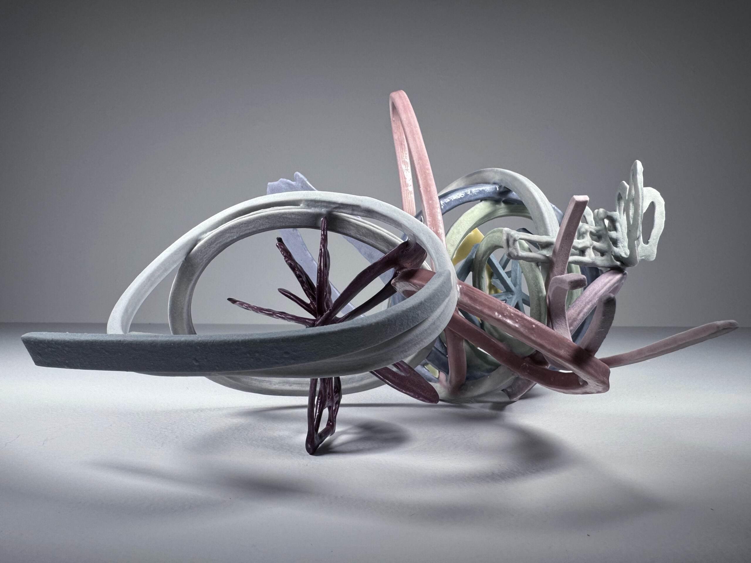 Multiple working methods are used to locate my drawing and painting in 3d space. 3d printed nylon/carbon fiber and recycled plastic from water bottles create structures for acrylic and oil painted wall reliefs. Free standing sculpture is assembled in porcelain, handbuilt, 3d printed and glazed. Making, mirrors my connection with landscape, autopoetic and discoverable in the moment.