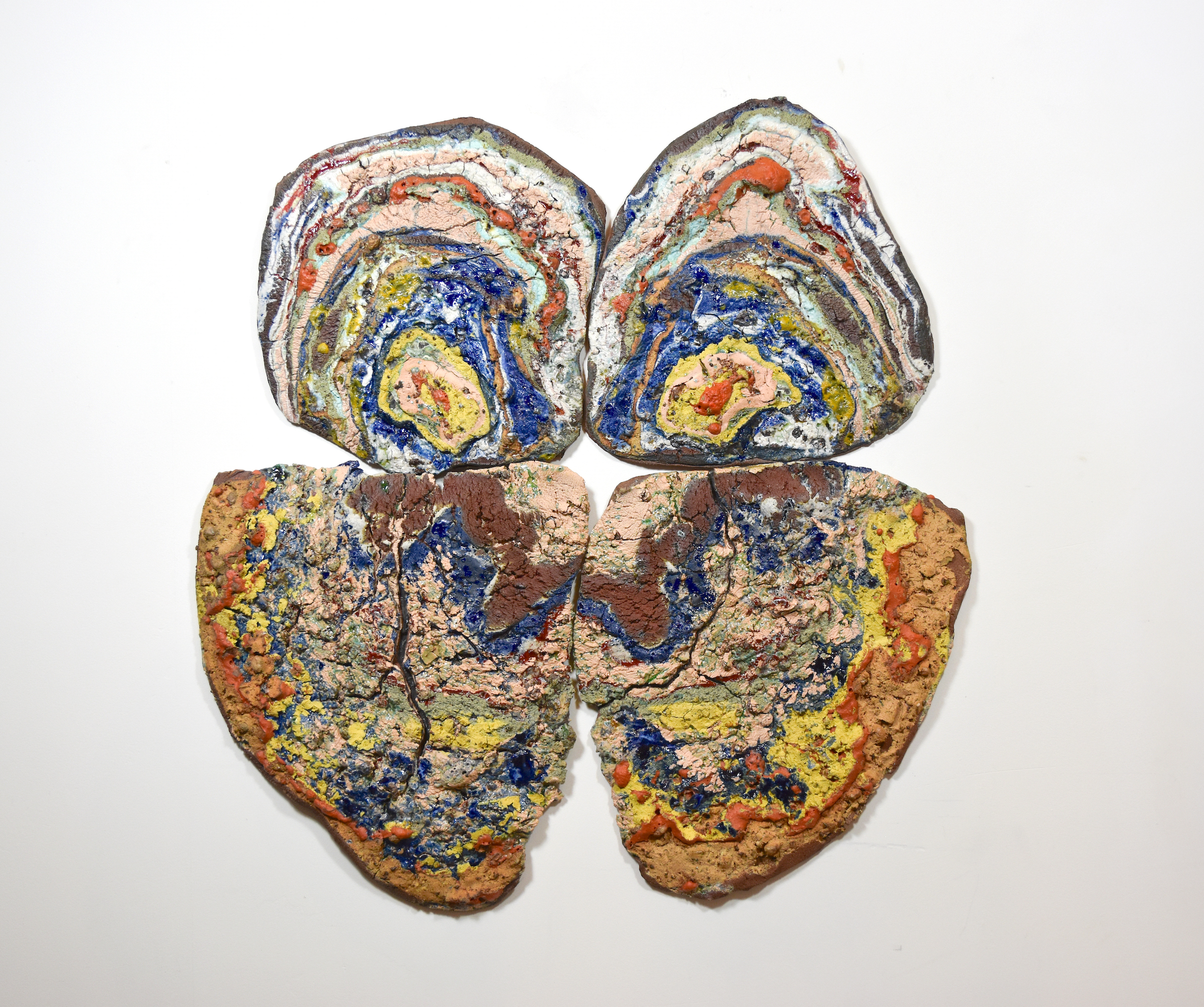 2024, 79" x 60" x 2", Media: Colored porcelain, Porcelain, Stoneware, Wild Clay/Raw Clay, Firing Process: Electric, Mid-range, Oxidation, Surface: Engobe / Slip / Underglaze, Glazed, Oxide, Pattern, Relief