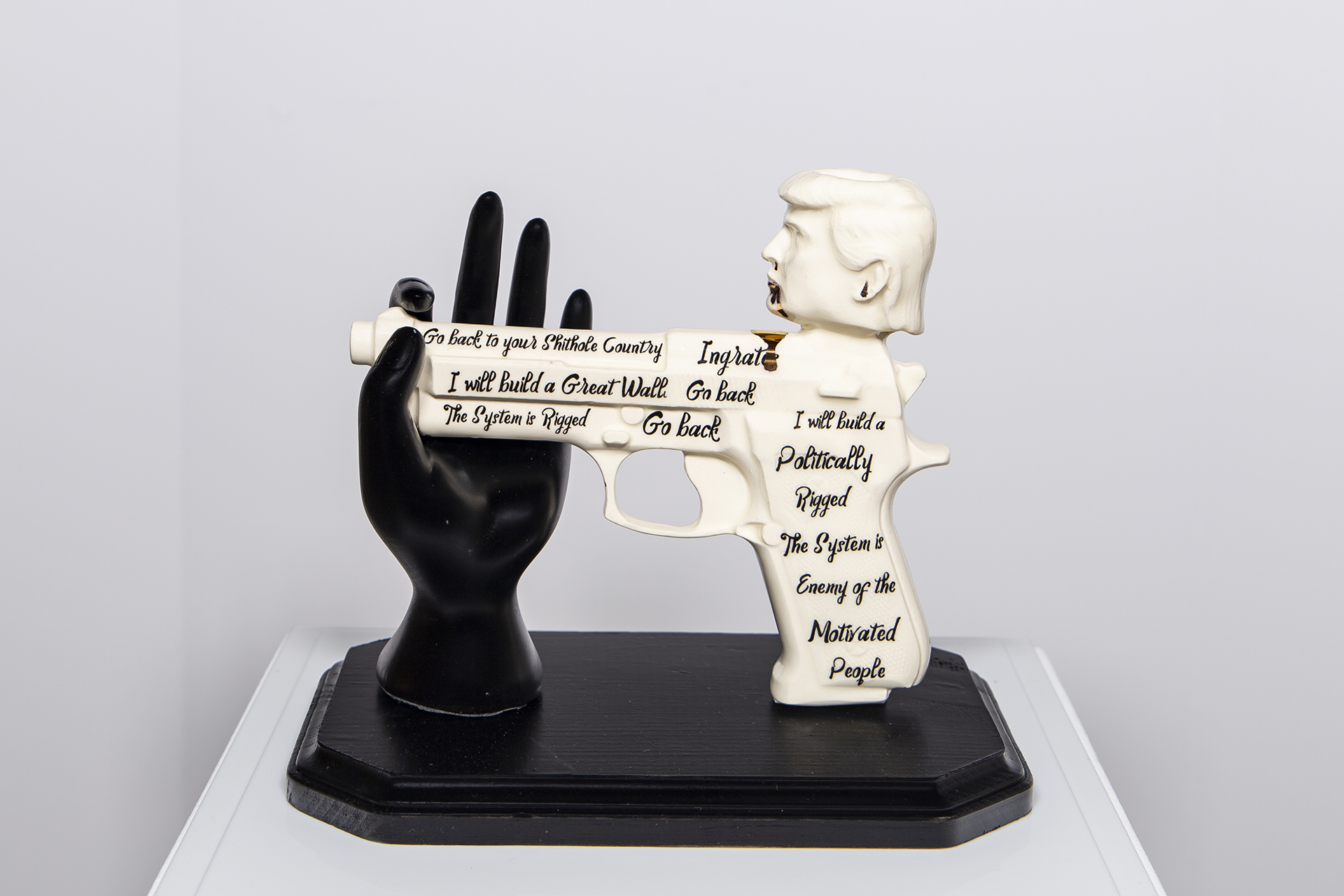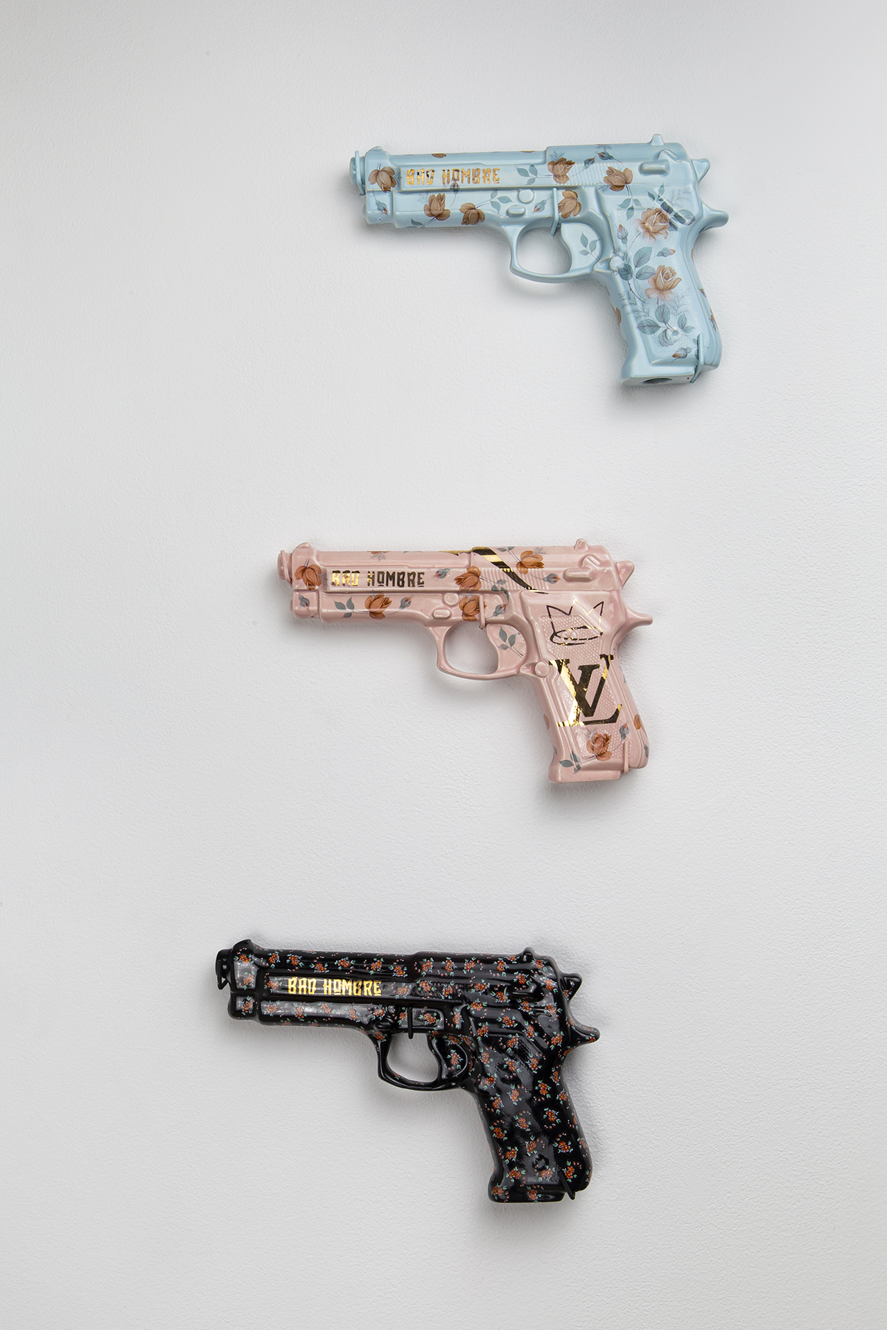 The process of creating my work happens over consecutive firings as I build up multiple layers on the surface of my clay work. I seek to transform and infuse new meaning into objects and symbols synonymous with my pre-Hispanic and Mestizo culture, as well as the seductive visual language of Western dominant culture. This creates a hybrid work which mimics my own layered identity.