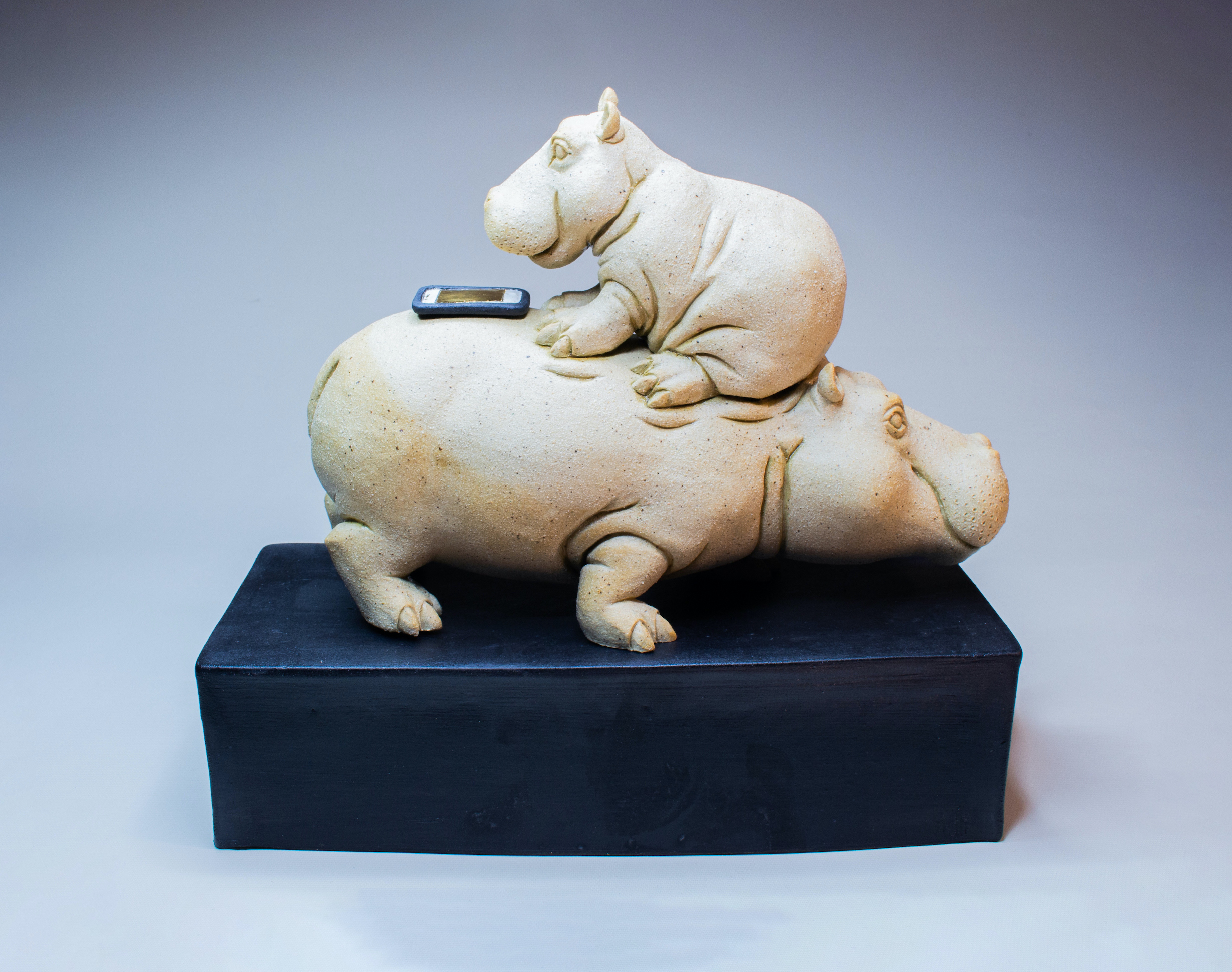(sold) This vase is part of a series of goat-headed vases I made while at a year-long residency at Baltimore Clayworks. They were all wood fired, this one has black underglaze on the horns and goat heads, the rest of the surface is just bare clay in the wood kiln.