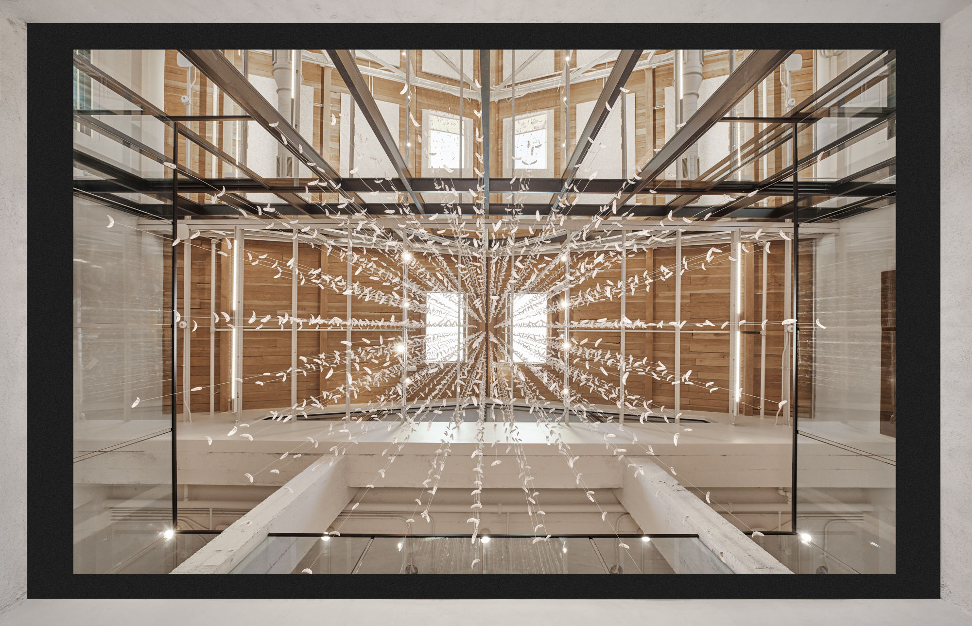 Our experience of time is much like water; constantly shifting and changing. Sitting on the floor crossed legged for hours at a time, I would pound out little pieces of clay and then fold them into the palm of my hand. These folds are made from various porcelain clay bodies, each with a slightly different hue. The memory of the clay reveals the lines from my hand and records the making of each intimate piece. The folds became a driving force, the pieces themselves began making me; the quiet hours spent folding clay in the studio lead me to a meditative peace. Countless hours would pass and the folds would accumulate. After firing the pieces, I sort them by size and by clay body and put them into boxes. For a year and a half I continued this process. I can’t say there was a solid plan of what these pieces were going to do when installed but after being so intimate with each of them I learned what they wanted to do. The intuitive, natural rhythm of my body knowing the pieces and careful attention as to how they fit together leads to a rhythmic process. Thousands of folds of clay are individually placed into a temporary configuration. Consideration goes into the height, the hue and the form as each piece is hand placed. I am able to transform the space piece by piece with the hopes of capturing a moment in time. I’m interested in how both objects large and small can create experiences that are special, beautiful and intimate. The modular objects capture the memory of the past with my palm print but they can be reconfigured endlessly for an new experience. The entire process is a way of seeking inner peace and being in the present moment. As moments don’t last forever, when I need to uninstall I take the pieces one by one and separate them back into their boxes, according to their size and hue. Although they are all boxed away, the memory of the manifestation still exists.