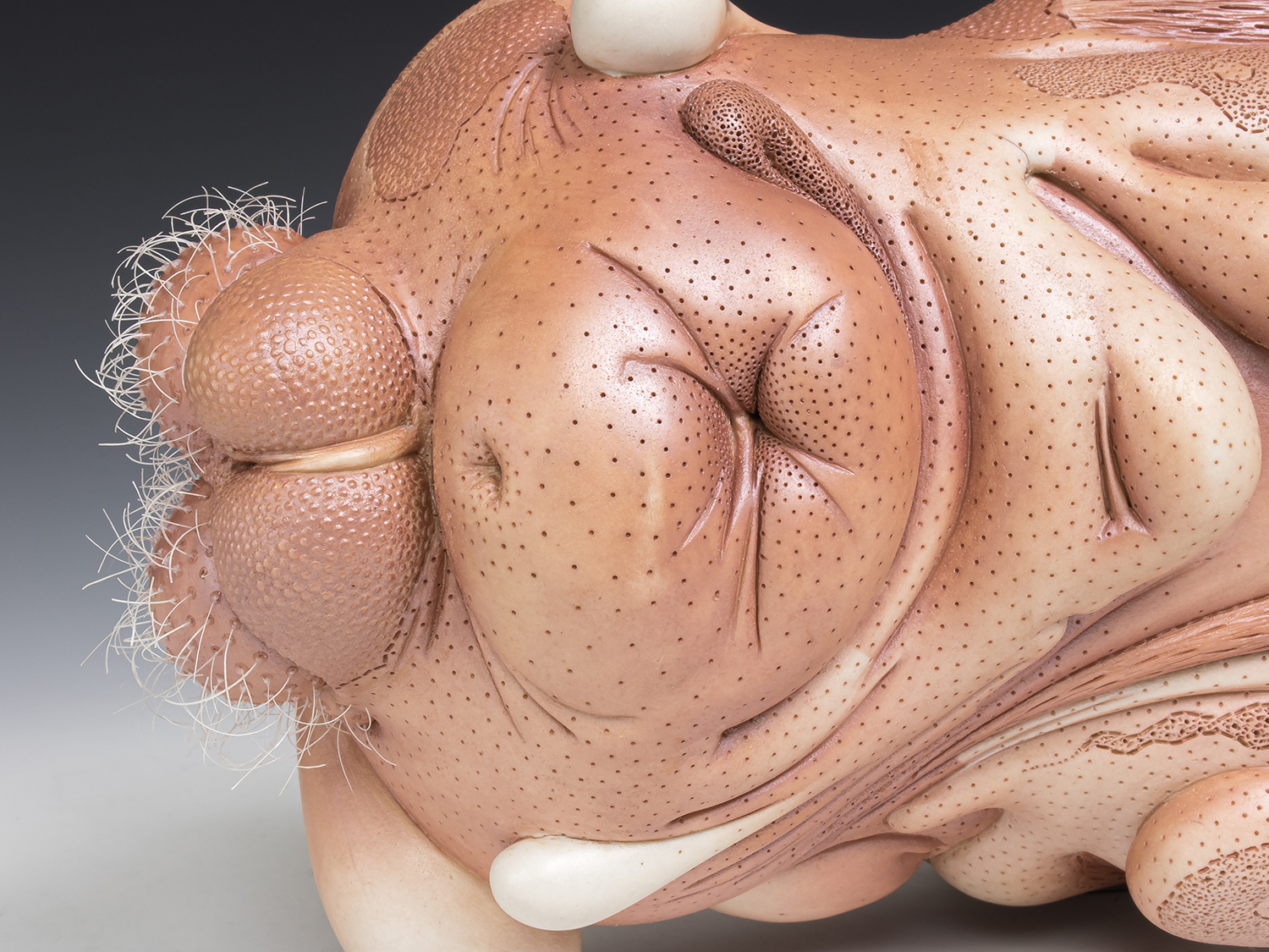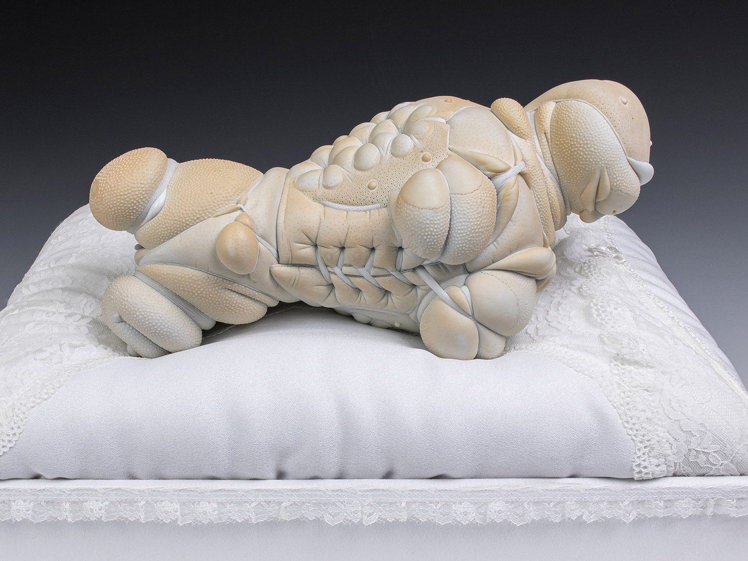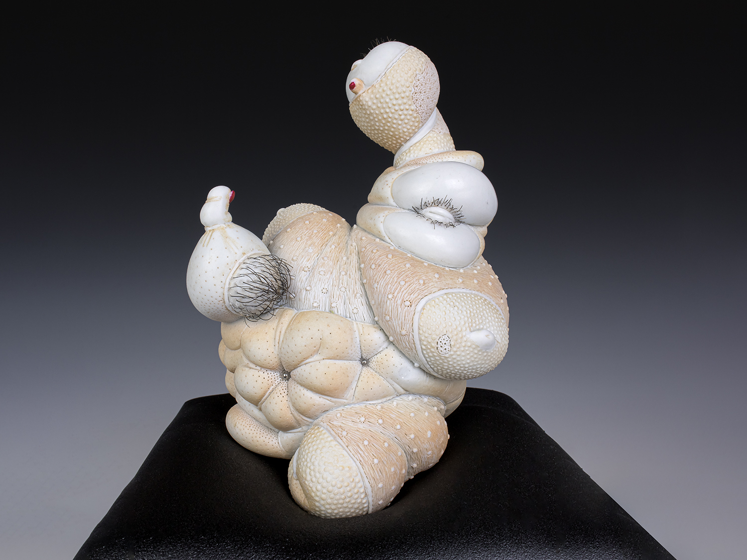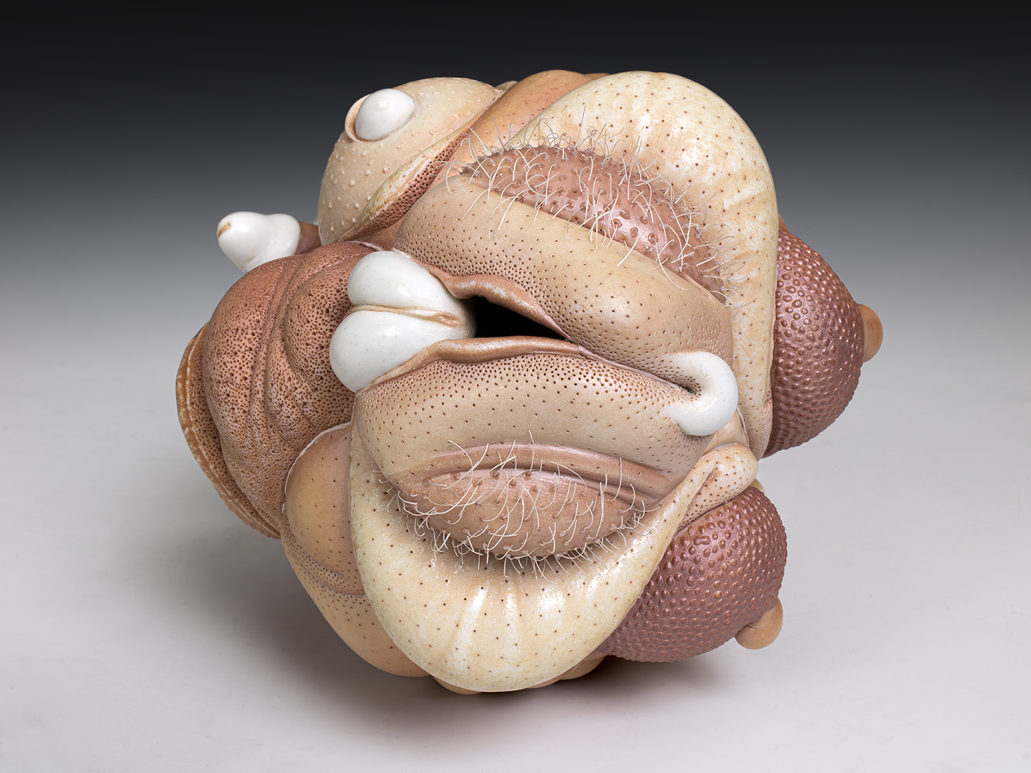 On one level, these pieces are part of an ongoing effort to document and expand upon that pre-adolescent moment. Though my objects contain strong visual references, I am more interested in the implied tactile ones; the things that stir in me a compulsion to touch. While manipulating porcelain, I recognize — and act upon — a profound desire to push, poke, squeeze, stroke, caress, and pinch. I intend for my pieces to invoke a similar sort of temptation: to dare the viewer to touch.