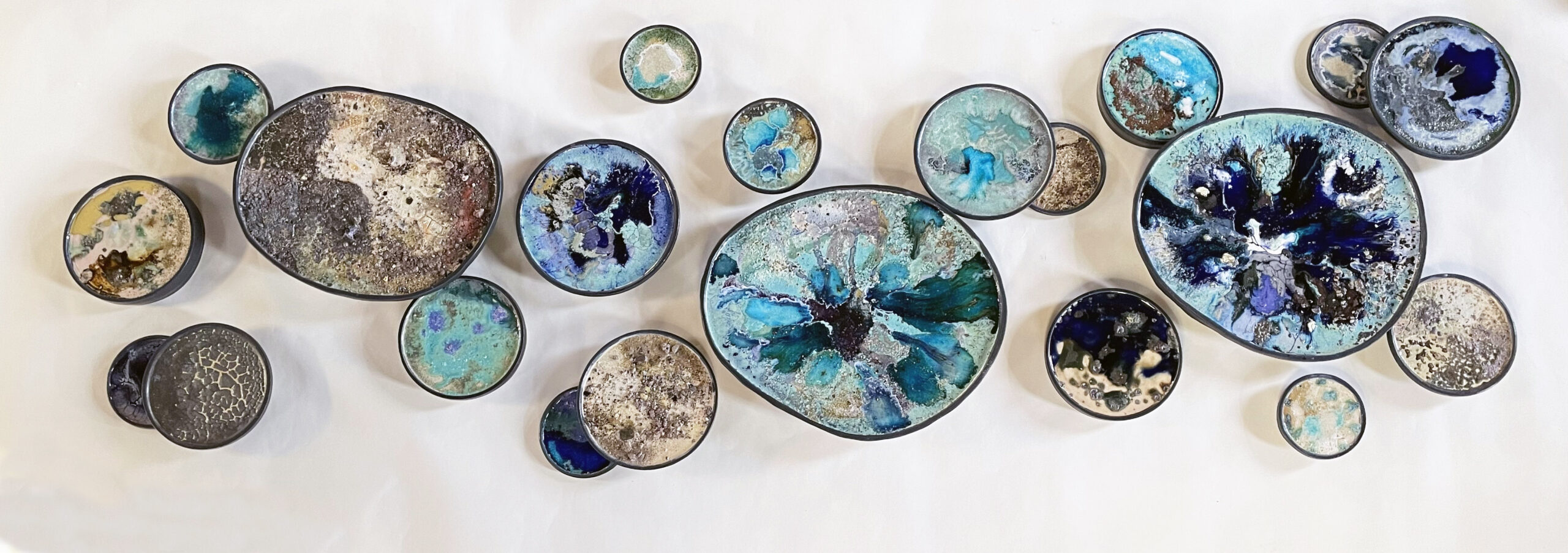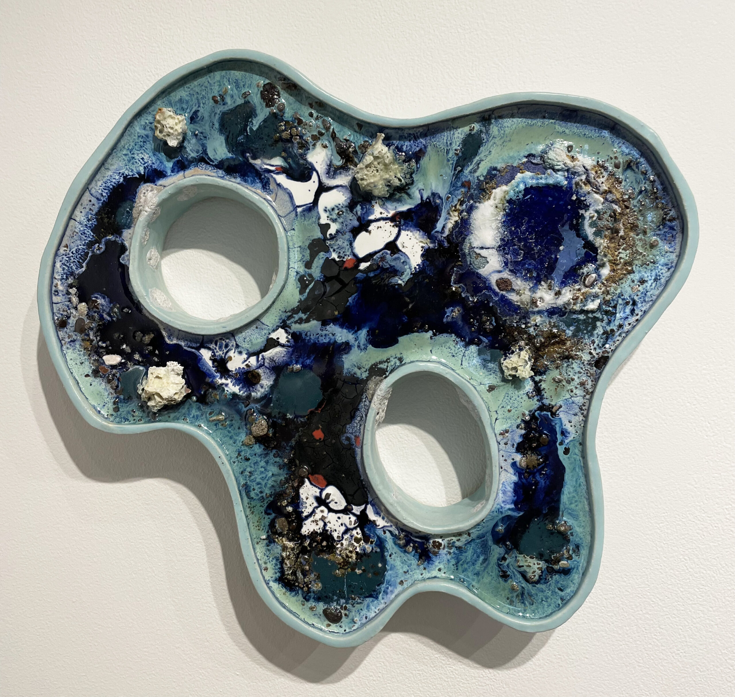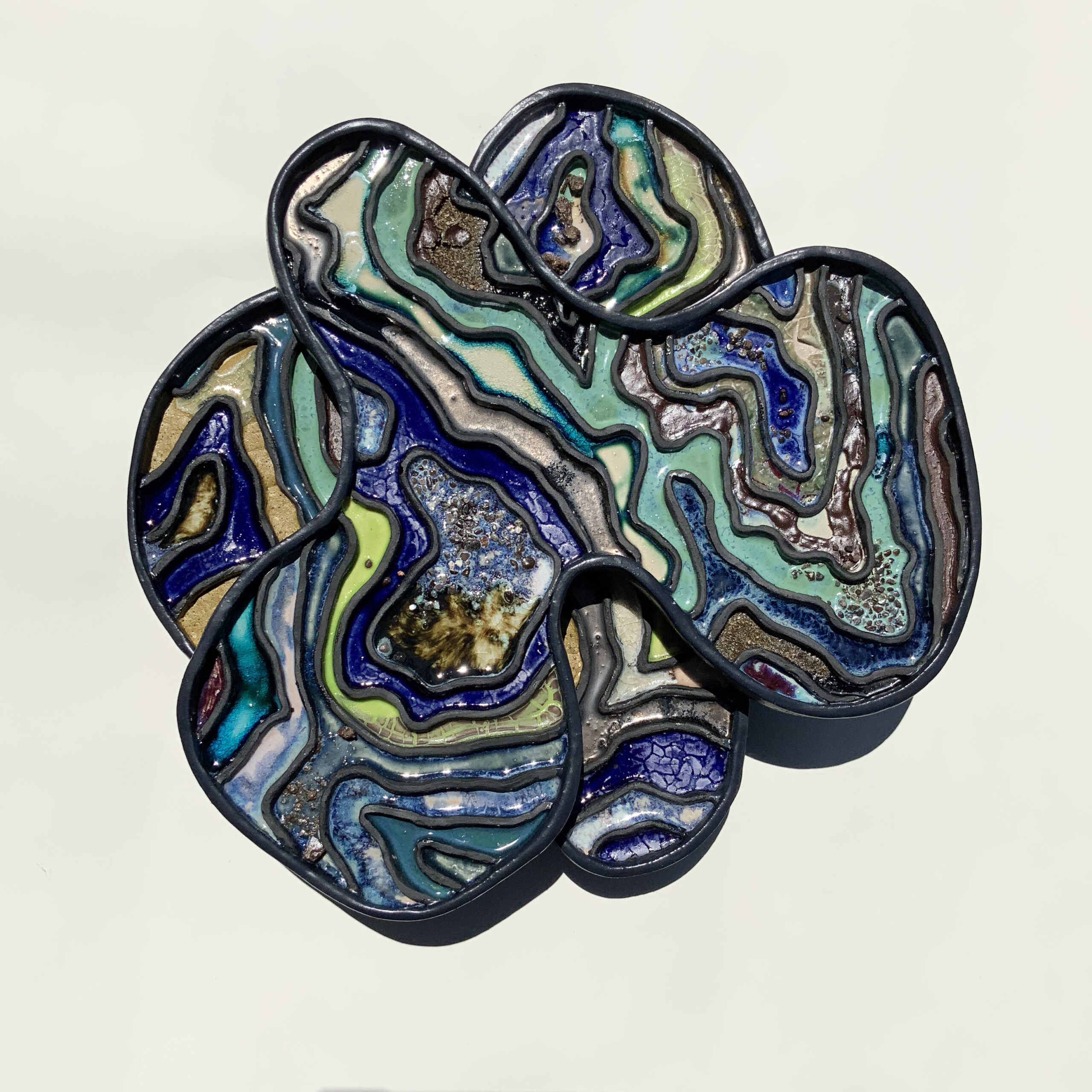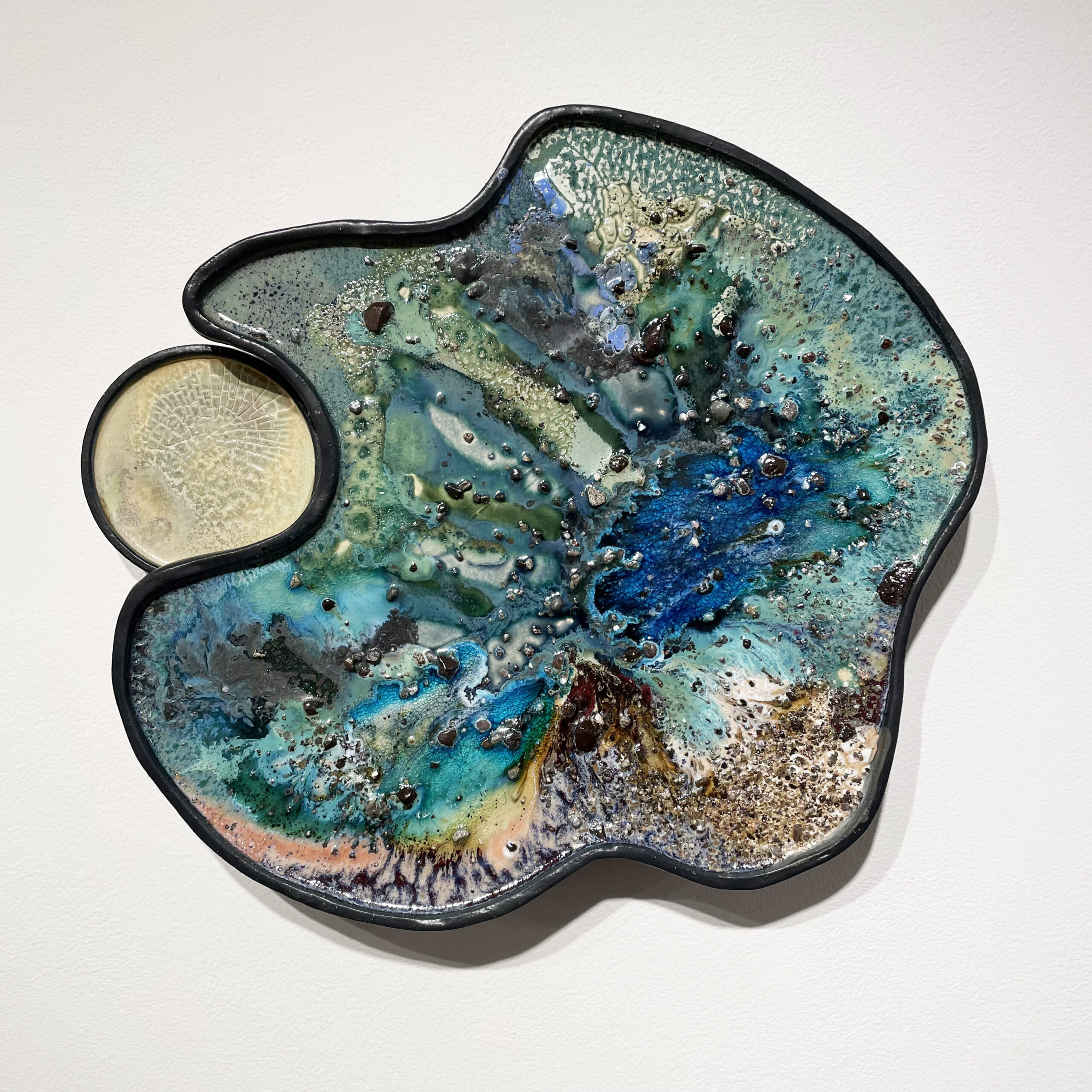We think of nature as untouched and wild, and not something controlled or created by humans. Through my work I attempt to create a sense of connection to nature in the viewer, utilizing materials collected in specific places along with topographical mapping, drawing connection to place and experience. Materials and process are important conceptual factors, as I combine traditional ceramic materials with found and sourced natural materials such as granite, clay, and sand mixed with collected refuse such as glass, metal, and waste glaze. These elements are changed through melting, flowing, and fusing together in the firing process to a different chemical state, mimicking the processes of the earth does over millennia and utilizing a sense of artifice, to visually represent abstractions of land, caves, and bodies of water, as well as simple life forms such as bacteria that may live in them. Remnants of human past can become a visible or invisible part through this process, drawing questions about nature as a built environment.