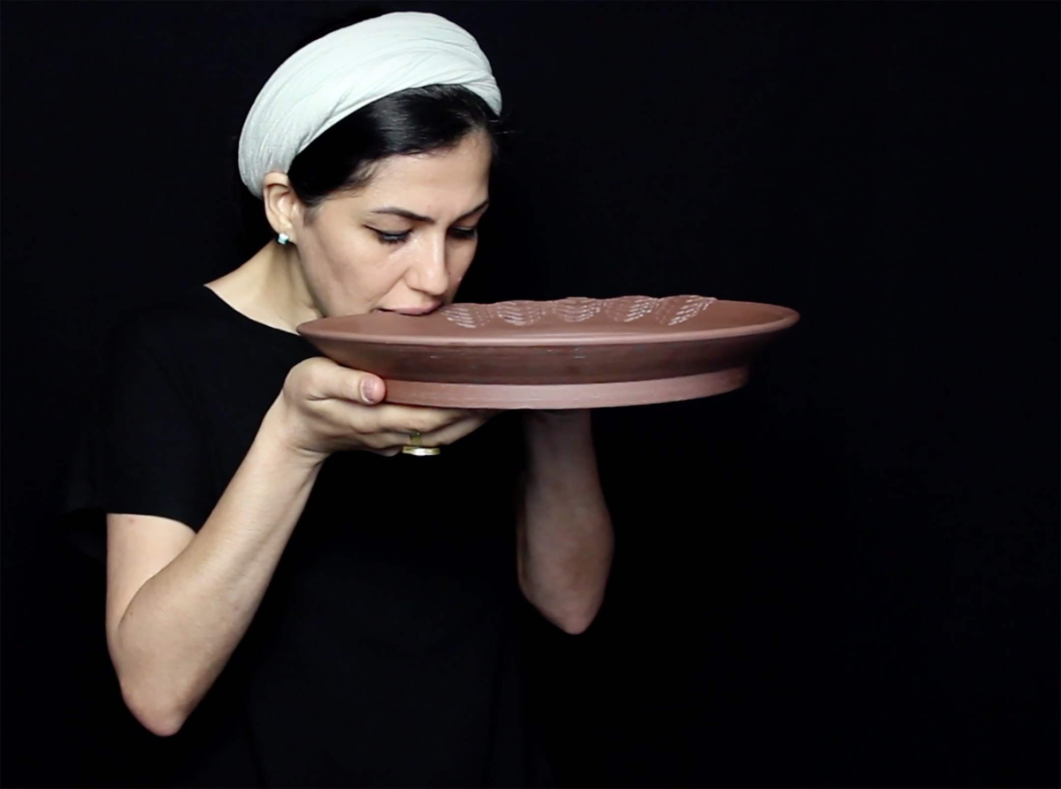 I draw inspiration from Islamic art and indigenous rituals for this artwork. I bite into plates I created from clay sourced across the US. Biting deep into the plates is a tactile approach to establishing my identity as a Middle Eastern woman. With this act, I unearth the buried histories to transcend colonial narratives within clay particles and artifacts. I use my body as a tool to imprint its unique mark on clay with respect to past knowledge and values. Both labor and ritual, the physicality of the action provokes attention to the internal. Form, pattern, and function captured as I sink my teeth into the clay, an artifact from when my body and spirit were borderless, an act of defiance and affirmation. Bite…to leave a mark of existence. Bite…to change the narrative. Bite…to become the narrative.