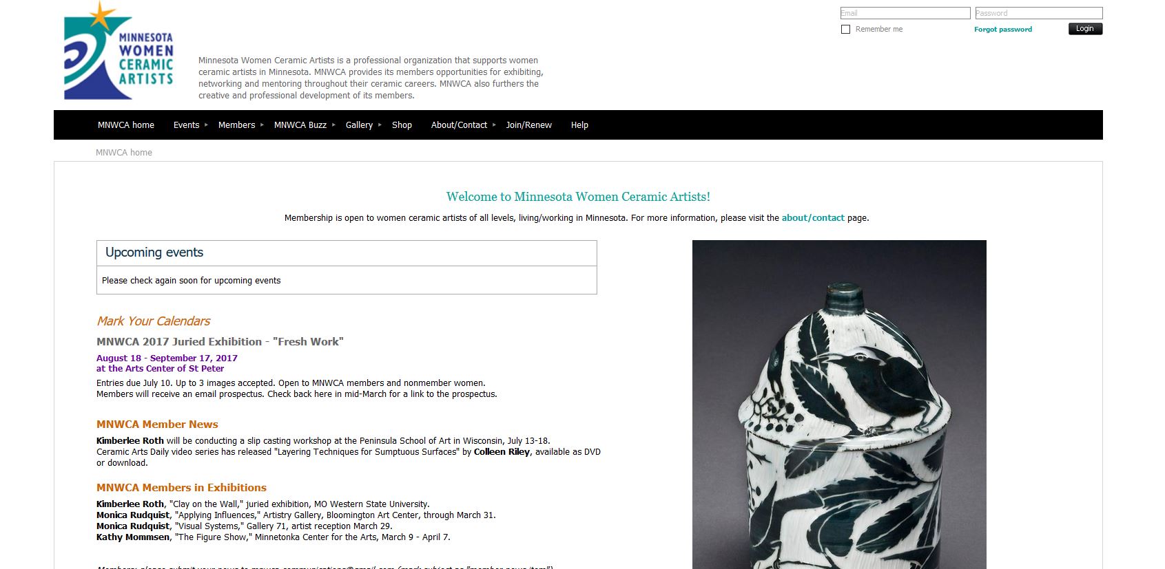 We are requesting works made within the last two years by members and non-members of Minnesota Women Ceramic Artists (MNWCA) to be considered for Fresh Work. Open to women ceramic artists living and working in MN, ND, SD, IA and WI. Primary medium must be clay. Wall, floor, and pedestal work accepted. Up to 5 images. Juror: Mary Roettger. Fee: $15 for members; $20 for non-members. Deadline: Friday, June 30.