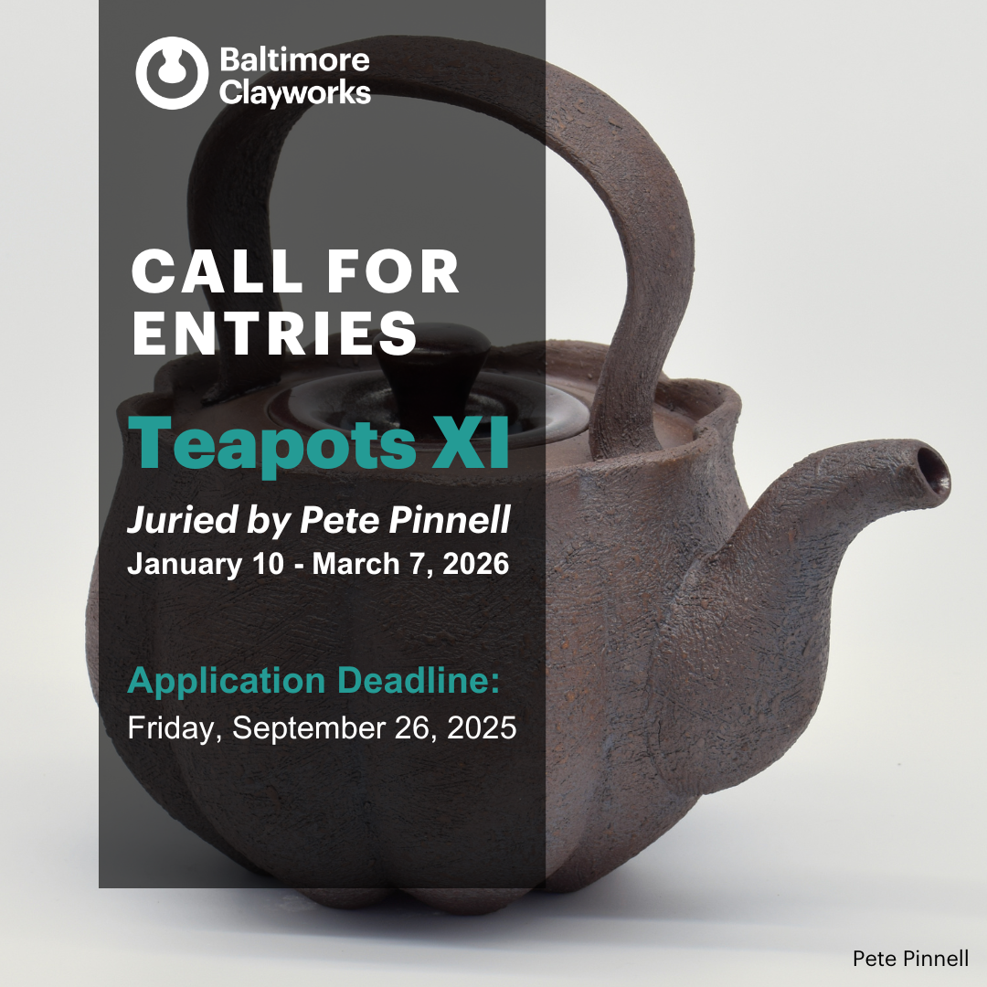 Baltimore Clayworks is pleased to announce a call for entries for Teapots XI, our annual exhibition celebrating the creativity, innovation, and craftsmanship of contemporary teapot makers. This national juried show invites ceramic artists to submit functional and sculptural teapots that explore form, surface, and concept.