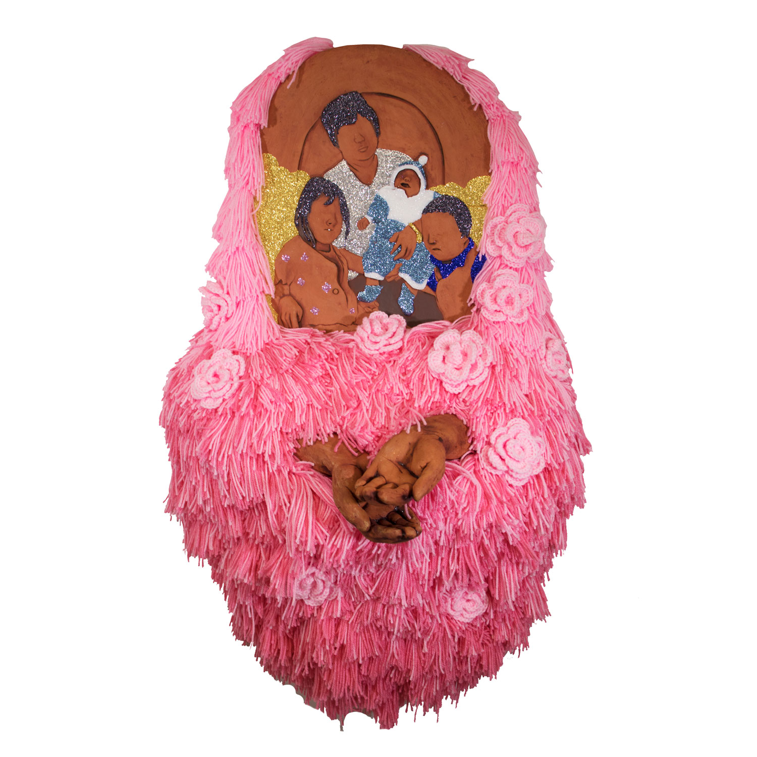 Whether addressing queer or immigrant bodies my practice is tailored to showcase the trauma, history, and barriers these people face. Reflecting on the lack of space and agency they posses, I present my pieces in environments were they can thrive and be safe. The work I create is colorful, innocent, gentle, soft, and safe. The use of clay, paper mache, glitter and crochet are important in my work because of their cultural and personal value. The use of accessible material has always been important in my practice and in the cultural development of my communities. I use material and methods that have been passed down by generation in my family to showcase the importance of their experience and honor their endurance. My art is a vehicle to celebrate the majesty of cultural heritage contrasted with challenges of living safely in the United States as a member of the immigrant and queer communities.