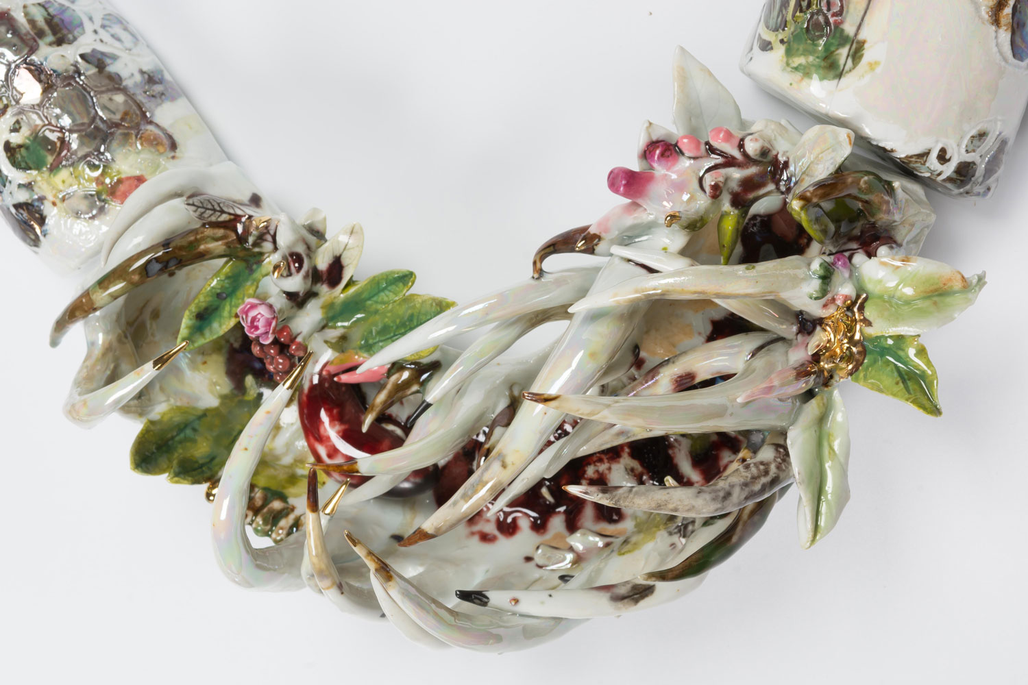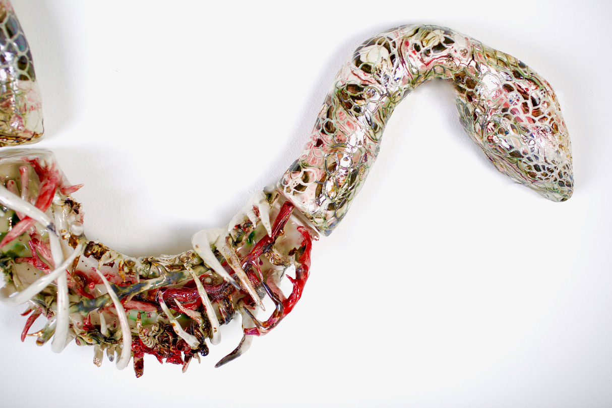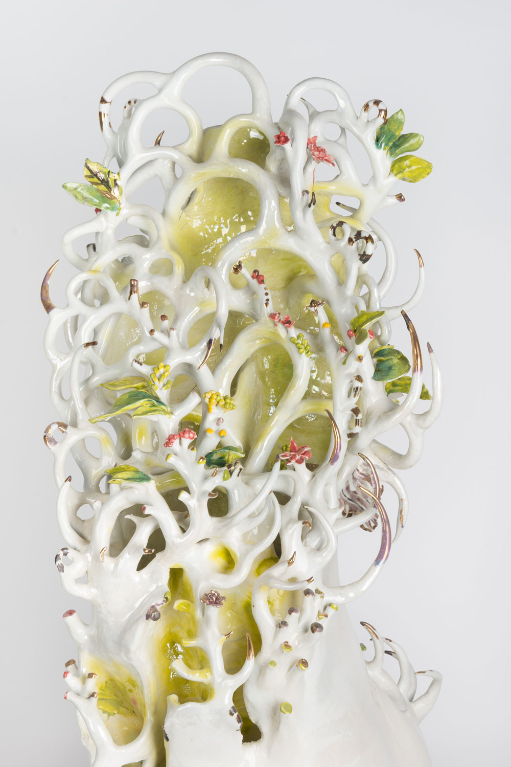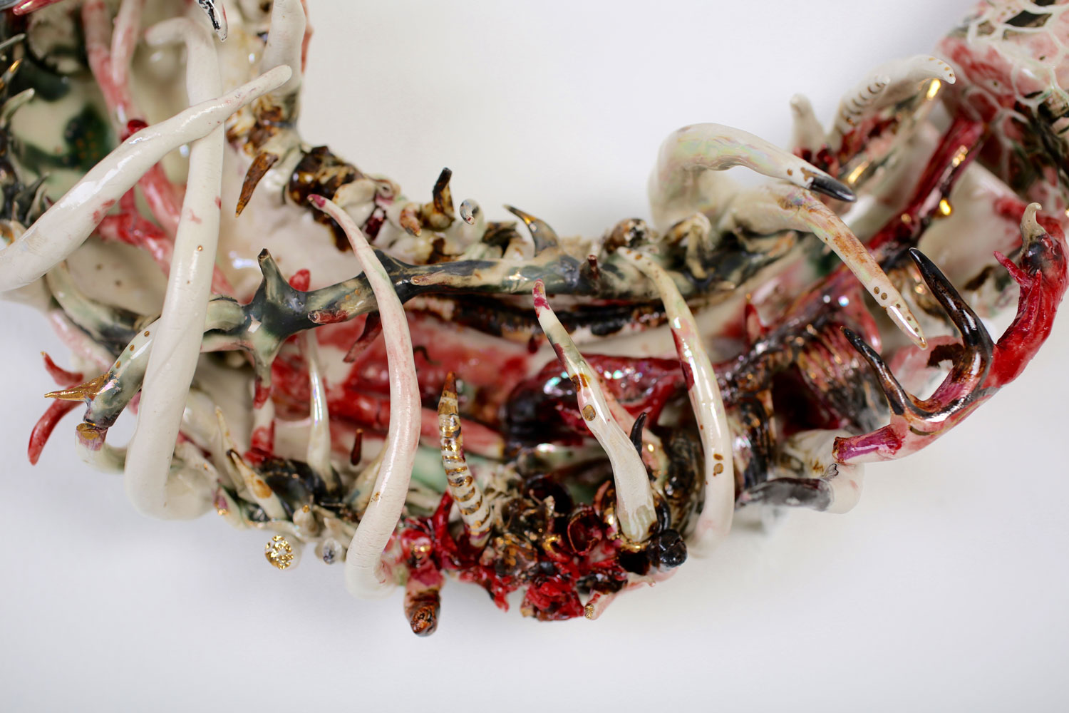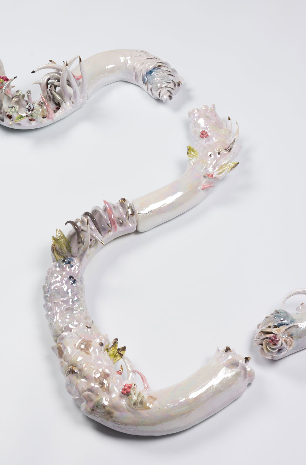 In my work, I explore different ways of expressing my experience of alienation, confusion and pain as a cultural outsider by creating narrative spaces that explore the lines between insides and outsides. Playing on the idea of the body being the house that shelter the spirit, I create work that is symbolic of the self. I instill the metaphorical sculptural self with a sense of organicity and intricacy by gesturing the bodily- the viscera and skeletal, morphing into the botanical to express the vitality, delicacy, and injury of the spirit inhabiting and animating the forms. As a third generation Chinese immigrant in Myanmar, I seek inspirations from cultural practices of ethnic Chinese and the local Burmese. Local animistic beliefs, folklores and mythologies inspire the imagery in my work. I am particularly interested in the female figures in Buddhist mythologies. In my most recent body of work, I explored creating hybrid bodies using imagery of Naga Maedaw, a dragon queen in Buddha’s birth stories, Jataka Tales. Art making, to me, is an ontological quest. I explore the nature of being by attempting to depict the ephemerality of the human condition. Condensation and displacement of violent desires, tender affections, spiritual hopes, sexual instincts and maternal conflicts are intimated with metaphors and symbols of nature’s cyclical growth, decay and death.Through exploring the otherness within the self, I hope to create enigmatic bodies, comprised of poetic spaces dwelled by the liminal self, fragmented and dislocated, in search and in transition, captured in a moment of growth and transformation.