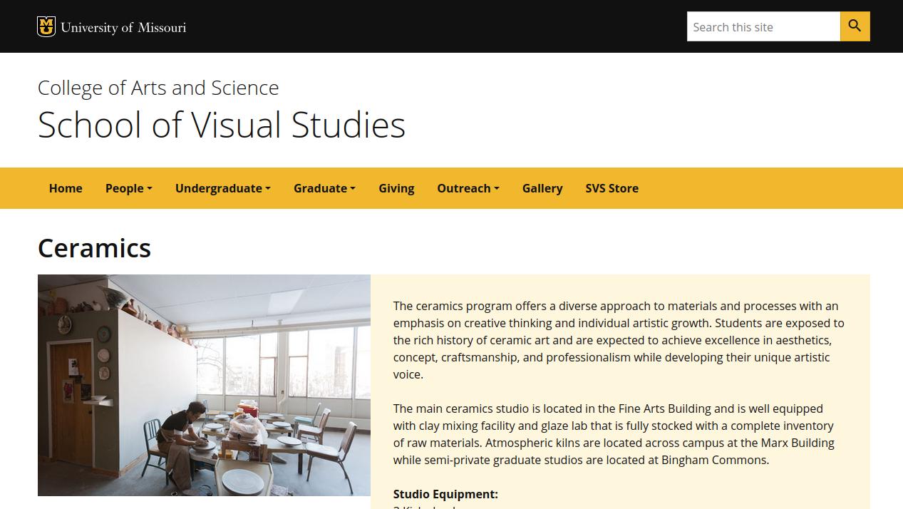 The School of Visual Studies (SVS) at the University of Missouri seeks a one-year Visiting Assistant Professor of Sculpture3-D & Art Program Technician for the 2021-2022 academic year. The position consists of a 2/2 load teaching undergraduate sculpture and/or 3-D Foundations along with 0.5 FTE Art Program Technician.